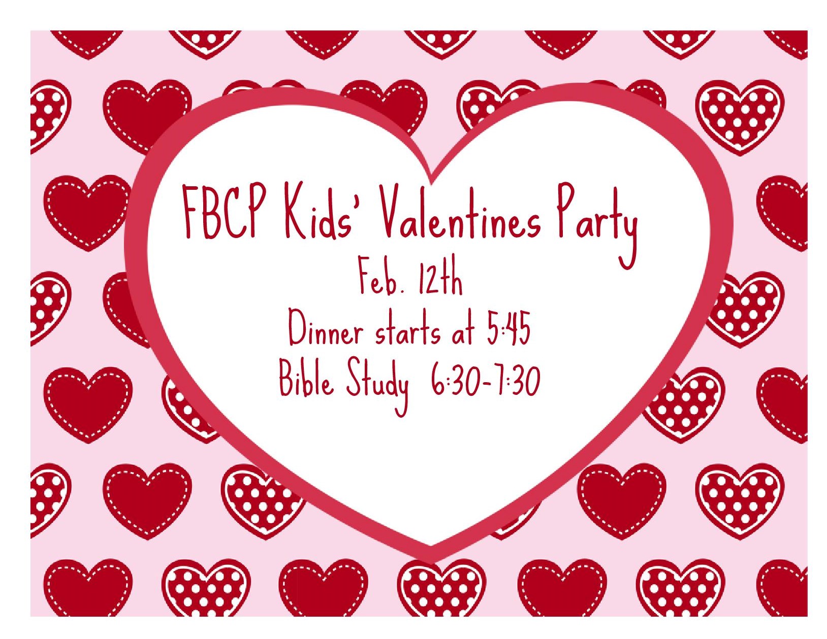 Please join us on Wednesday, Feb 12 for a Valentine Party with games, cookie decorating, and more. Please feel free to bring a friend!