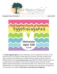 Newsletter for April 2, 2019 Click on the image to open the newsletter in PDF format (opens in a new tab). Joe Reed2019-06-12T15:15:58-04:00 SHARE ON FacebookXEmail