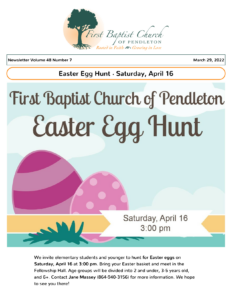 Newsletter for March 29, 2022