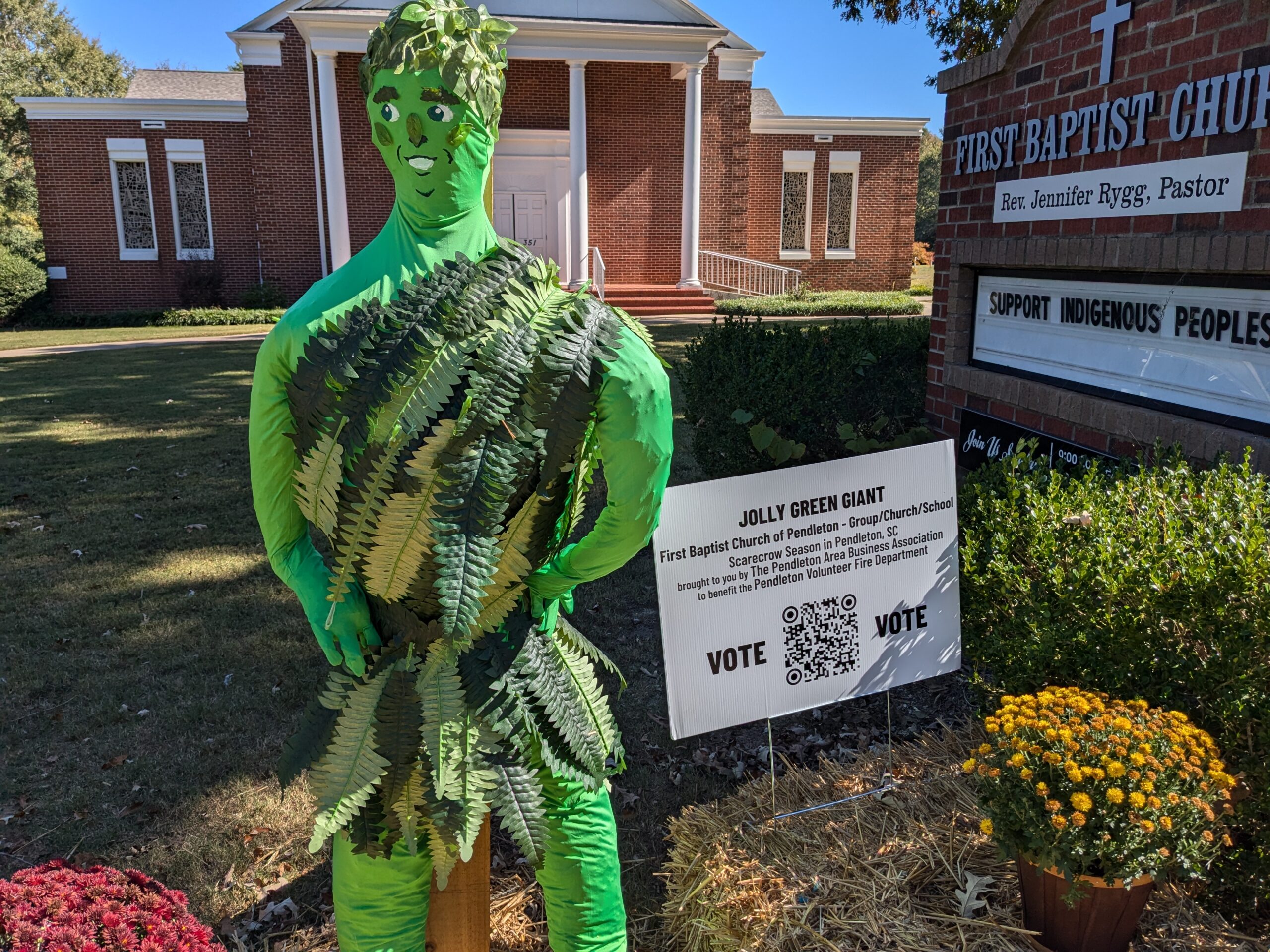 There is an upcoming election, not with the weight of the Nov 5 election, but still near to our hearts, and that is the Town of Pendleton Scarecrow Competition voting, which is open and will continue until Saturday, Oct 26 at noon! Our scarecrow is in the Group/Church/School category.