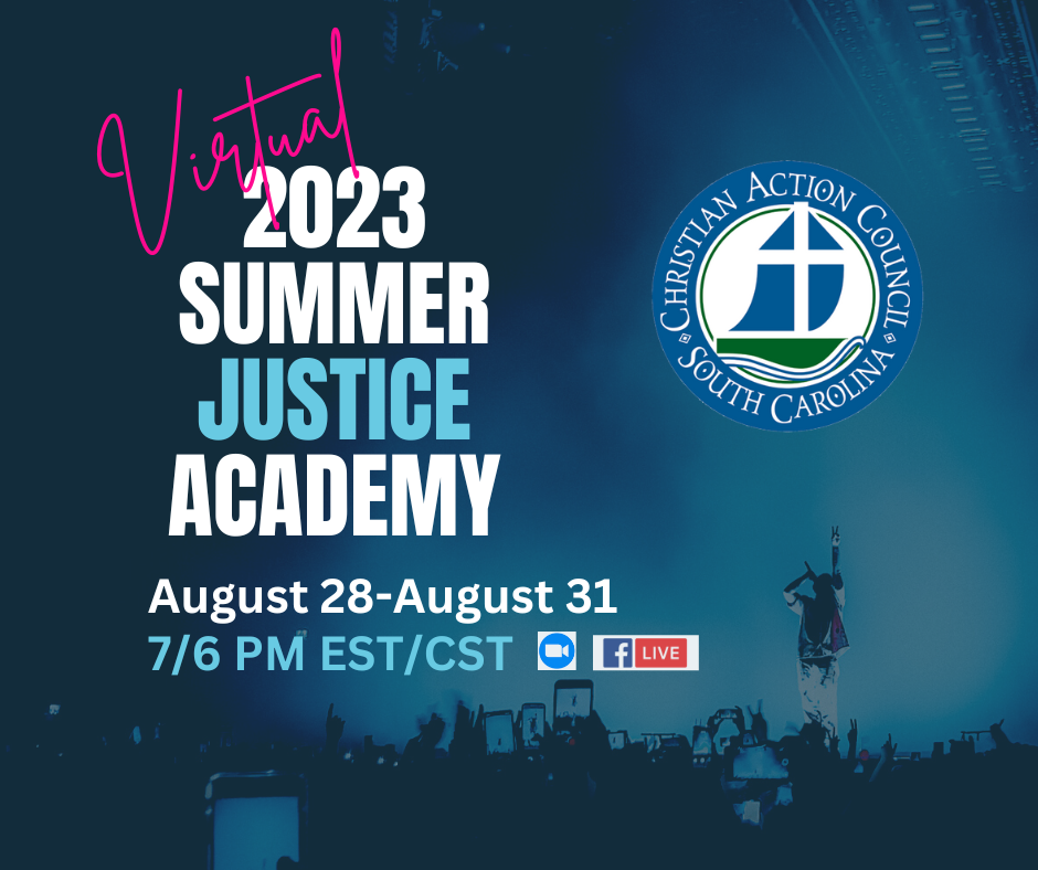The South Carolina Christian Action Council is offering a one-week Summer Justice Academy. The event will take place on Zoom for one hour each evening (7-8 pm) August 28-31. Each session will cover a different topic related to justice and faith. From the exploitation of the most vulnerable via predatory lending to a first-hand account of life on death row, participants will be educated, informed, and equipped to live more justly with a commitment to #ChristianActionEveryDay.