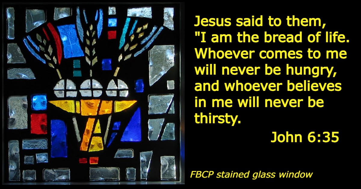 The Call to Worship will be “Panis Angelicus (Bread of Angels)” by César Franck. Rev. Jennifer McClung Rygg will lead the Passing of the Peace. The Hymn of Praise will be “All Who Hunger, Gather Gladly.” The reading from the Old Testament will be 1 Kings 19:4-8. The Offertory Hymn will be “Wonderful Words of Life.” Rev. Jennifer McClung Rygg will lead the Offertory Prayer and the Lord’s Prayer. Richard Reynolds Huss will play “I Am the Bread of Life” for the Offertory. Kim Burgess will read the Gospel message from John 6:35, 41-51. The Sanctuary Choir will sing “Holy Lord.” Rev. Jennifer McClung Rygg will preach the sermon “Eat to Live.” The Hymn of Response will be “O God, Our Help in Ages Past.”