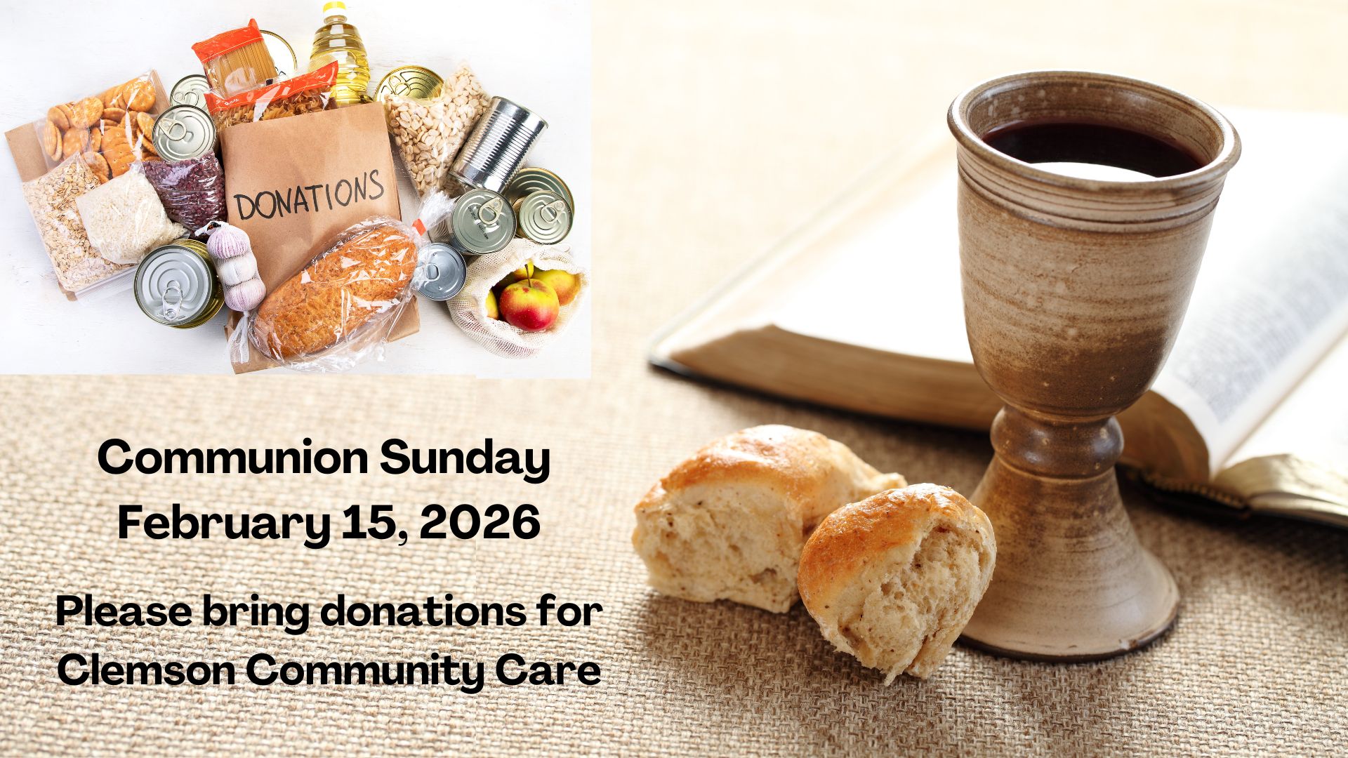 On the last Sunday before the season of Lent begins, we will observe communion. Please bring a donation for Clemson Community Care.