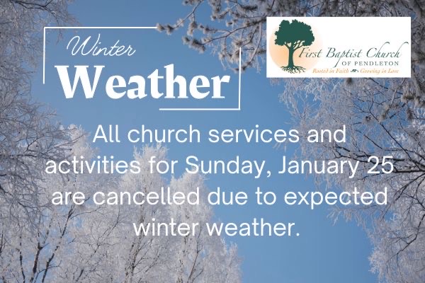 Please be safe and stay warm! If you need help from your church family during this time, please reach out to me or to your deacon. I can be reached at 864-760-7135.